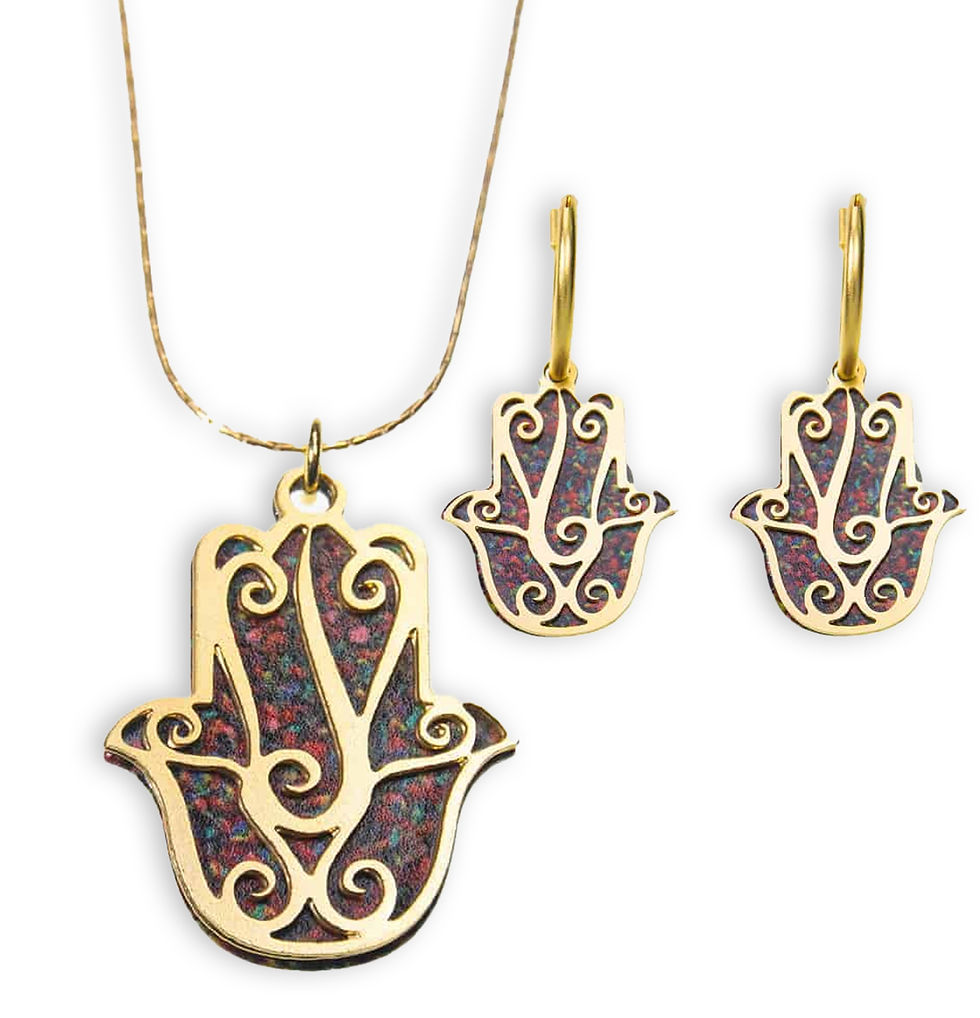 תליון "חמסה'" דו צדדית עדינה ועגילים דו צדדיים מתנה שליח עד הבית חינם
